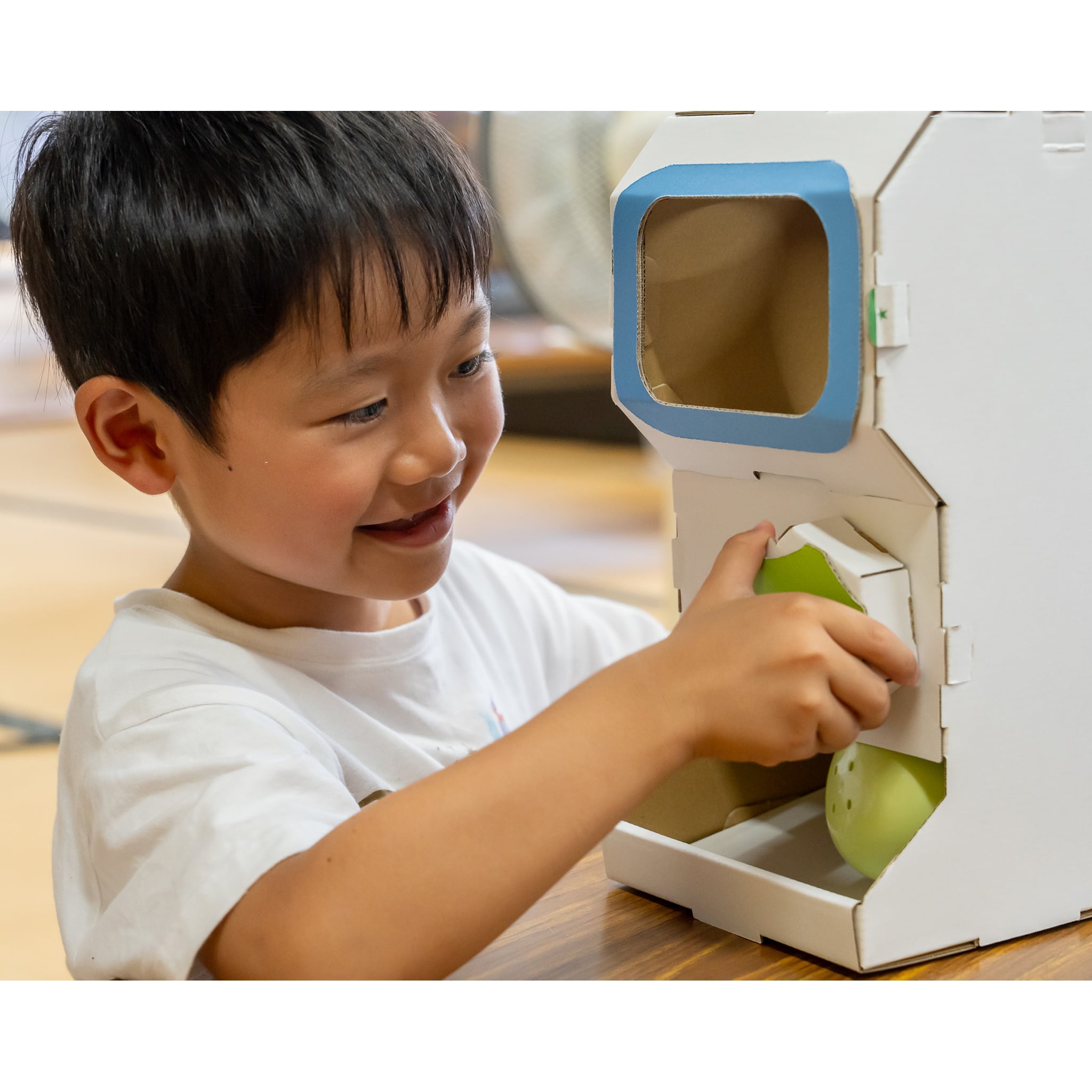 ダンボール製ガチャと、牛乳パック素材から生まれた紙カプセルが出会い…