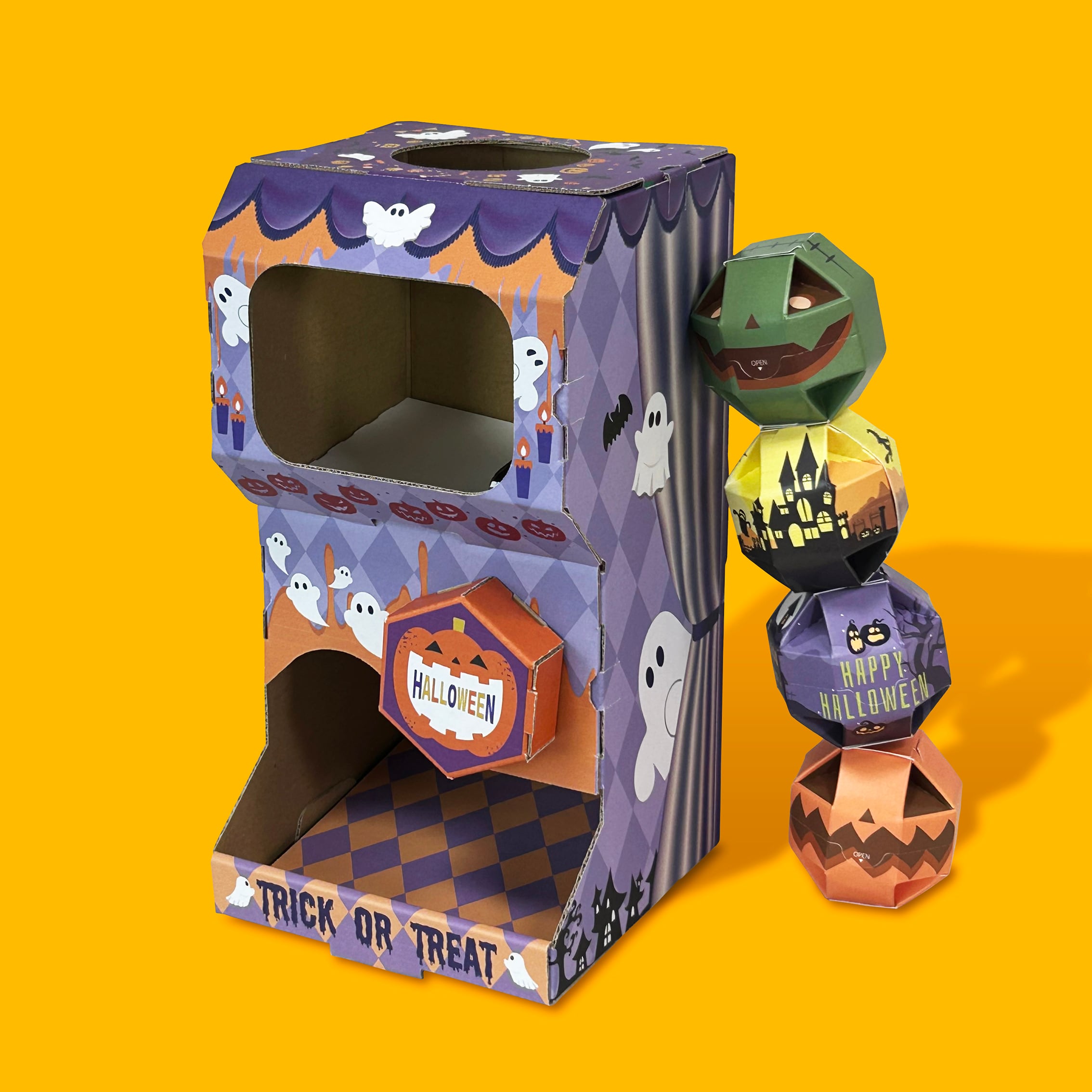 ハロウィンパーティーにみんなで工作、作ったガチャとカプセルに好きなお菓子を詰めてガチャガチャ…Trick or Treat!