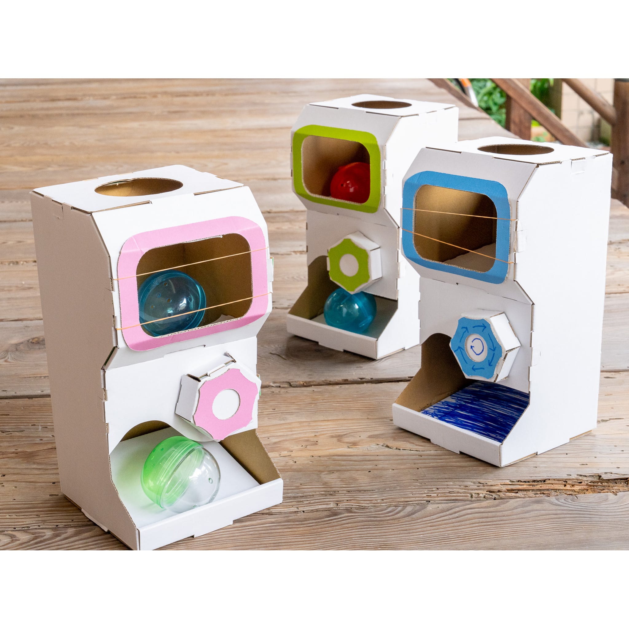 ダンボール製ガチャと、牛乳パック素材から生まれた紙カプセルが出会い…